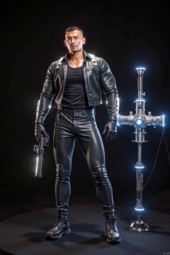 1man,solo,realistic,male focus, muscular, Skin texture,Future style gel coat,Future Combat Suit,Glowing Clothing,Laser gun,Future Technology Space Station,full body,high detail, ultra-high resolution,32K UHD, clear focus, best quality, masterpiece,jzns,plns