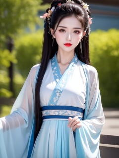 1 girl,diamond earrings,see-through,headwear,with heavy makeup,red lips,Moisturizing red lips,eye makeup,Handing over Hanfu,upper_body,solo,front,