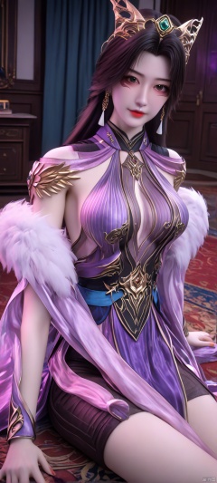 (high definition, Best quality, masterpiece, 4K, exquisite skin), 1girl, solo, breasts, looking at viewer, room, sitting,