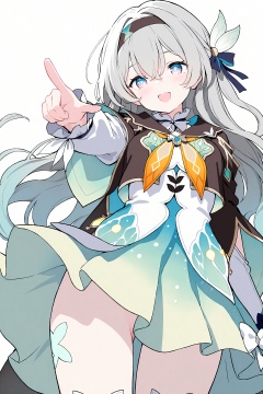masterpiece,best quality,amazing quality,very aesthetic,absurdres,newest,impactful picture,offcial art,movie perspective, (ke-ta:0.5),(yoneyama mai:0.5),from_below, 1girl,solo,firefly \(honkai: star rail\),loose_clothes,gauze,very long gauze,a dazzling gauze,fantastic light,pointing up,hair with a strange glow,fisheye lens,:d,