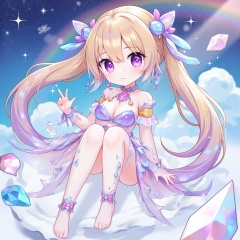 chibi,an anime girl,chibi,floating and rainbow long hair,Iridescence and rainbow, beautiful detailed starry sky,(((crystals texture Hair))),((beautiful detailed glass hair)),((glass shaped texture hand)),((crystallize texture body)),gem body,hands as clear as jewels,crystallization of clothes,((crystals texture skin)),sparkle, lens flare, light leaks,broken glass,detailed glass shaped clothes,beautiful detailed gemstone sky, gemstone sea, crystals texture flowers,((detailed crystallized clothing)),