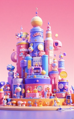 professional 3d model,anime artwork pixar,3d style,good shine,OC rendering,highly detailed,volumetric,dramatic lighting, building,circular,powder,city background,pink,cartoon, beautiful colorful background,very beautiful,masterpiece,best quality,super detail,anime style,key visual,vibrant,studio anime