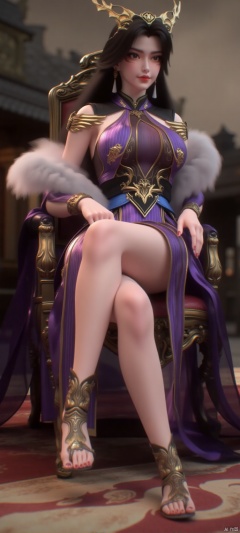 (high definition, Best quality, masterpiece, 4K, exquisite skin), 1girl, solo, breasts, looking at viewer, room, sitting on chair, feet