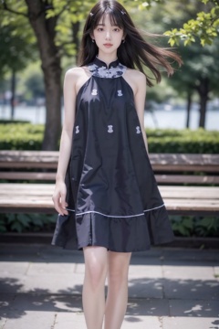 realistic,photo,masterpiece,highest quality,exquisite details,amazing art,realistic details,pretty face,real skin,8K,RAW,movie lighting,soft light,shallow depth of field,bokeh,dreamy,1girl,huge breasts,long hair,black hair,standing,full body,(solo,lakeside,in spring,park),<lora:add_detail:0.5>,<lora:VeryLongLegs_v2:0.4>,very_long_legs,<lora:ENNE 黑色无袖连衣裙_v09:1>,sleeveless dress,black dress,minidress,floral print,bare shoulders,