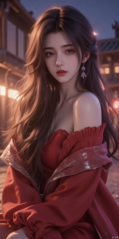 a asian woman, sexy long hair, charming and seductive temperament, distant close-up, golden ratio, movie texture, minimalism, high-end feeling, strong contrast between cold and warm, outdoor scenes,