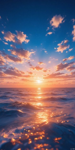 the eye-level view reveals a vibrant orange and blue sky