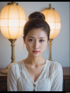 score_9, score_8_up, score_7_up, score_6_up, score_5_up, score_4_up, source_anime, (masterpiece, Highest quality:1.4), (beautiful, beautiful, perfection, delicate, Complex:1.2), (cute, Adorable), (Depth of written border:1.2), Realistic Face:1.2,35mm film, one pretty girl, solo, updo, prefect face, makeup, big tits, cleavage, sexy shirt, looking at viewer, bright lights, softbox lighting, upper body, epiCPhoto,