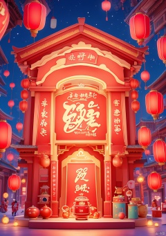 xiqing,E-commerce booth,ornamental,Lnianhuo Chinese New Year night sky with a lot of fireworks blooming and flying in the background there is an ancient Chinese building the building is red and blue and yellow lights the building is dotted with red Chinese lanterns shot at eye level the Chinese building mounted in front of an e-commerce showcase the showcase is decorated with a bunch of household appliances used for display there are small pink appliances in the middle of the stage hanging Chinese lanterns adding a touch of color to the scene! color. Each one has a unique design. The whole building has a dark blue sky as the background dotted with white fireworks E-commerce booth,
