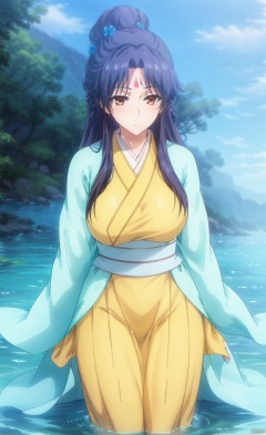 Big breasts, big breasts, Lying in the water, lying supine in the water, with lotus flowers in the water, characters in the center of the water, ancient costumes, Hanfu, Chinese clothing, barefoot, belt, shy blush, red cheeks,
