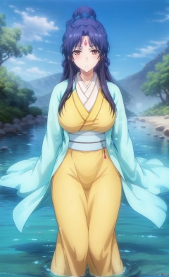 Big breasts, big breasts, Lying in the water, lying supine in the water, with lotus flowers in the water, characters in the center of the water, ancient costumes, Hanfu, Chinese clothing, barefoot, belt, shy blush, red cheeks,