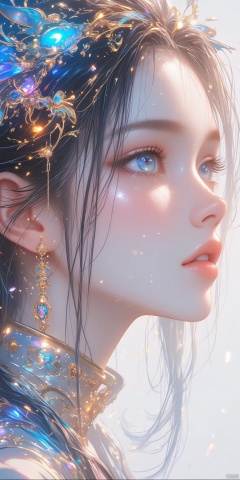 A stunning 8K fractal artwork! On a crisp white background, a majestic young woman's face is delicately rendered in intricate lines and swirling patterns. Her features are exquisitely detailed, with shimmering bright colors that seem to dance across her skin. Soft, feathery strands of hair frame her gentle expression, evoking a sense of ethereal romance. The overall effect is breathtakingly beautiful, a true masterpiece of digital artistry.,wanghong