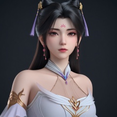 (upper_body:1.1),(huge breasts:0.9),85.<lora:YQponymengkeerV2:0.8>,(q1528437228:1.3),solo,jewelry,long_hair,black_hair,earrings,hair_ornament,bare_shoulders,dress,facial_mark,forehead_mark,white_dress,detached_sleeves,hair_bun,tassel,see-through,double_bun,sash,detached_collar,,blush,(looking_at_viewer:1.1),BREAKintricate details,shiny_skin,solo focus,(blurry background:1.1),(depth of field:1.1),perfect_anatomy,(cinematic lighting:0.9),(volumetric lighting:0.9),(simple background,pure black background,black background:1.1),