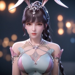 (upper_body:1.1),(huge breasts:0.9),34.<lora:YQponyxiaowuV8:0.8>,(q1528437228:1.5),1girl,solo,dress,long hair,rabbit ears,animal ears,ponytail,brown hair,hair ornament,pink dress,black hair,jewelry,bare shoulders,metal collar,necklace,braid,collar,high heels,brown eyes,,blush,(looking_at_viewer:1.1),BREAKintricate details,shiny_skin,solo focus,(blurry background:1.1),(depth of field:1.1),perfect_anatomy,(cinematic lighting:0.9),(volumetric lighting:0.9),(simple background,pure black background,black background:1.1),