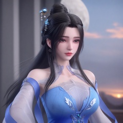 (upper_body:1.1),(huge breasts:0.9),<lora:YQponylimuwan1V4:0.8>,(q1528437228:1.1),solo,1girl,black_hair,long_hair,hair_ornament,dress,jewelry,earrings,blue_dress,hair_bun,chinese_clothes,long_sleeves,single_hair_bun,realistic,black_eyes,bare_shoulders,ponytail,hanfu,see-through,hair_stick,detached_sleeves,blush,(looking_at_viewer:1.1),BREAKintricate details,shiny_skin,solo focus,(blurry background:1.1),(depth of field:1.1),perfect_anatomy,(cinematic lighting:0.9),(volumetric lighting:0.9),light rays,shiny clothes,light beam,hourglass,(Short torso:1.1),(High waistline:1.1),(planet,:1.2),
