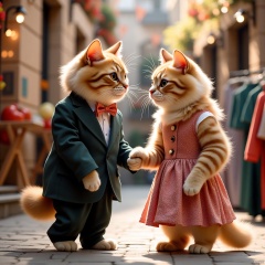mimi,two cats,hold hand,hands together,eye touch,shopping,wear suit,another cat wear dress,couple cat.,Huge animals and beautiful women