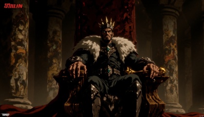 In the hall of an ancient castle, huge stone pillars support the lofty dome. On the walls hang faded and magnificent tapestries depicting the glorious battles of the past. A king dressed in a splendid robe is sitting on an oak throne studded with jewels. His eyebrows are knitted, his eyes are deep and worried, and he is tightly holding the golden scepter symbolizing power in his hand, seemingly thinking hard about the future of the country.
