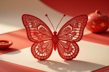 butterfly,symmetry,Chinese style paper carving, paper-cut style, light and shadow, intangible cultural heritage, details, 4K, red theme, close-up, depth of field,paper-carving,