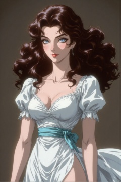 This woman is tall and well-proportioned, with a head of soft brown curly hair naturally draping over her shoulders. Her face is exquisite, and her fair skin is as warm and smooth as suet jade. Her tall nose makes her side profile appear more three-dimensional.