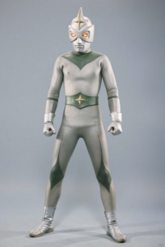 Mirrorman,ultraman,silver bodysuit,silver gloves,legwear,gloves,boots,cover,mask,plugsuit,armor,bodysuit,green pattern on body,silver tight-fitting,silver footwear,helmet,leather suit,latex,tokusatsu,no humans,science fiction,silver head,hard mask,no smile,no eyes,no nose,solo,silver rubber bodysuit with green line