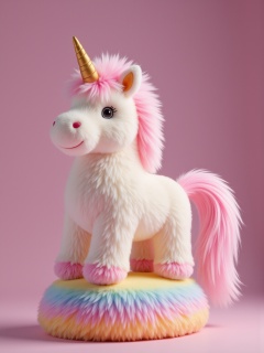 YY_plush,cute,Plush wool,Plush,soft edge,matching,plush,3D,real,3d model,Inflation,expansion,soft gradient colors,studio lighting,light reflection,(masterpiece:1.2),exquisite,high resolution,perfectillumination,(Extreme detail cG:1.2),best quality,8K,subtle Long-furred plush unicorn, with a flowing mane and tail that are extra soft and fluffy. The unicorn has a shimmering horn and sparkling eyes, standing majestically on a rainbow-colored base.<lora:YY-毛绒F.1:1>,