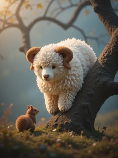 YY_plush,A cute sheep,Plush wool,Plush,soft edge,matching,plush,3D,real,3d model,white wool,Inflation,expansion,soft gradient colors,studio lighting,light reflection,(masterpiece:1.2),exquisite,high resolution,perfectillumination,(Extreme detail cG:1.2),best quality,8K,subtle stylized by Giacomo Balla and C. R. W. Nevinson,photograph,a group of wild animals gather around a large oak tree,their fur glistening in the sunlight. A small brown bear perches on a branch,watching as he gazes at a squirrel with his head bent low. Foggy conditions,Amusing,Magical Realism,Candle light,Kodak UltraMax 400,800mm lens,<lora:YY-毛绒F.1:1>,