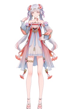 score_9,score_8_up,score_7_up,score_anime,8k,best quality,masterpiece,(ultra-detailed),(high detailed skin),(by nanoless, by misumi \(macaroni\),:0.5),<lora:YLI 0.1v:0.25>,<lora:style1:0.25>,A full-body portrait of a young girl,standing gracefully,pastel art style,high-key lighting,shoujo manga influence,hd quality,delicate details,full body,full shot,standing,looking at viewer,(solo:1.2),simple background,white background,hand on own hip,<lora:jxnew-pony-Tanger:0.8>,jinhsi,jinhsi \(peach blossom\) \(wuthering waves\),(clothes:peach blossom pink dress,alternate costume,bare shoulders:1.2),flower-shaped pupils,1girl,hair ornament,hair flower,twintails,bangs,jewelry,very long hair,