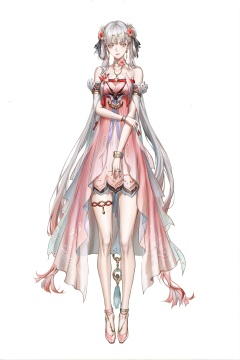 masterpiece,best quality,<lora:wqmt-gnoob-Tanger:1>,Path to Nowhere \(video game\),game CG,<lora:jxnew-noob-Tanger-000014:0.8>,jinhsi,jinhsi \(peach blossom\) \(wuthering waves\),(clothes:peach blossom pink dress,alternate costume,bare shoulders:1.2),flower-shaped pupils,1girl,hair ornament,hair flower,twintails,bangs,jewelry,very long hair,1girl,solo,white background,simple background,full body,looking at viewer,standing,so cool,