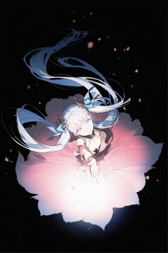 yoneyama mai,rella,rolua,negative space,cinematic shot,very awa,masterpiece,highres,absurdres,newest,year 2024,year 2023,wide shot,from above,tragedy,standing,looking up,looking at viewer,head up,head tilt,outstretched hand,reaching towards viewer,black background,simple background,<lora:KonyaKarasue-000008:0.55>,<lora:96YOTTEA-WAI:0.65>,<lora:add-detail-xl:0.5>,<lora:ponyv4_noob1_2_adamW-000017:0.33>,<lora:spo:0.85>,<lora:jxnew-noob-Tanger-000014:0.8>,jinhsi,jinhsi \(peach blossom\) \(wuthering waves\),(clothes:peach blossom pink dress,alternate costume,bare shoulders:1.2),flower-shaped pupils,1girl,hair ornament,hair flower,twintails,bangs,jewelry,very long hair,1girl,solo,white background,simple background,full body,looking at viewer,standing,so cool,