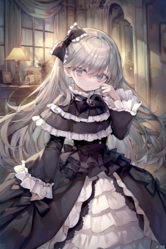 score_9,score_8,score_7, Ghost Belle & Haunted Mansion \(ygo\), 1girl, solo, long hair, looking at viewer, bangs, hair bow, gothic lolita,