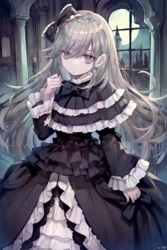 score_9,score_8,score_7, Ghost Belle & Haunted Mansion \(ygo\), 1girl, solo, long hair, looking at viewer, bangs, gothic lolita, threaten, frighten,
