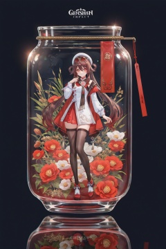 masterpiece,best quality,good quality,((artist:reoen),(artist:fuzichoco),(artist:atdan),(artist:torino_aqua),year 2024:0.8)1girl,[artist:wlop],jijia,2d,anime,1girl,solo,looking at viewer,in container,see-through,standing,hand up,character name,black background,reflection,copyright name,gradient,a glass bottle with a picture of a woman on it,a picture of a girl inside a clear container with a bunch of stuff in it,interval glass,inside the container,glass separation,<lora:huxiang-noob-Tanger-000014:0.8>,hu tao \(cherries snow-laden\) \(genshin impact\),clothes:cherries snow-laden,flower-shaped pupils,1girl,white hat,long hair,symbol-shaped pupils,scarf,hair rings,black thighhighs,red eyes,sunglasses,brown hair,long sleeves,zettai ryouiki,hair between eyes,