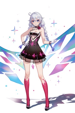 8k,best quality,masterpiece,(ultra-detailed),(high detailed skin),((artist:reoen),(artist:fuzichoco),(artist:atdan),(artist:torino_aqua),year 2024:0.8)1girl,[artist:wlop],[artist:ningen_mame],artist:ciloranko,[[artist:rhasta]],artist:tidsean,colorful,detailed light,light leaks,sunlight,bokeh,blurry foreground,ray tracing,lens flare,cinematic lighting,full body,full shot,standing,looking at viewer,(solo:1.2),simple background,(white background:1.2),hand on own hip,(white background:1.1),<lora:kiana-young-noob-Tanger:0.8>,kiana kaslana,geji,geji dress,6th clothes,1girl,blue eyes,braid,long hair,twin braids,dress,white gloves,bare shoulders,A full-body portrait of a young girl,standing gracefully,pastel art style,high-key lighting,shoujo manga influence,hd quality,delicate details,