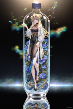 masterpiece,best quality,good quality,((artist:reoen),(artist:fuzichoco),(artist:atdan),(artist:torino_aqua),year 2024:0.8)1girl,[artist:wlop],<lora:jijia-gnoobv-Tanger-000014:0.7>,jijia,2d,anime,1girl,solo,looking at viewer,in container,see-through,standing,hand up,character name,black background,reflection,copyright name,gradient,a glass bottle with a picture of a woman on it,a picture of a girl inside a clear container with a bunch of stuff in it,interval glass,inside the container,glass separation,<lora:songque-noob-Tanger:0.8>,songque,def clothes,youfang,1girl,blonde hair,long hair,breasts,jewelry,double bun,blue eyes,ring,black skirt,high heels,white jacket,eyewear on head,sunglasses,