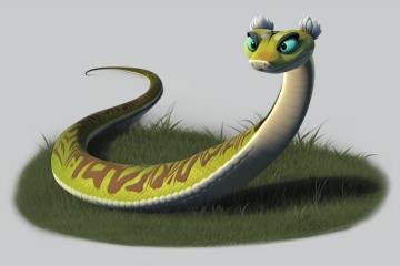 Masterpiece,Best Quality,master viper,snake,grass,full body,feral,thin tail,simple background,solo,<lora:master viper-000008:1>,(headdress:1.1),full body,belly,