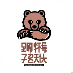 CTLG, BEAR, the bear emblem, embodies a powerful and majestic design. The bear stands tall, its body a rich brown with black claws and eyes. Its strong eyes are amber, signifying strength and protection. The white canvas is serene, with "GUARDIAN OF THE WOODS" in sleek brown italic beneath the emblem.