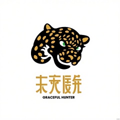CTLG, LEOP, the leopard logo, showcases a chic and dynamic design. The leopard's coat is a striking black with golden rosettes. Its eyes are a mesmerizing green, conveying stealth and agility. The white canvas is simple, with "GRACEFUL HUNTER" in bold gold at the footer.