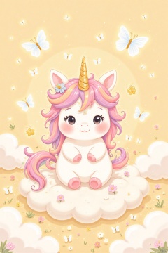 In a warm, golden-lit studio setting, a whimsical illustration comes to life. A majestic unicorn, rendered in exquisite 16k detail, poses majestically on a soft, fluffy cloud. Its gentle gaze and delicate features exude a sense of calm, as if it's about to whisper a secret to the viewer. The cartoon-style charm is amplified by the soothing colors and intricate textures, creating a visually stunning masterpiece that embodies a healing style, perfect for soothing the soul.