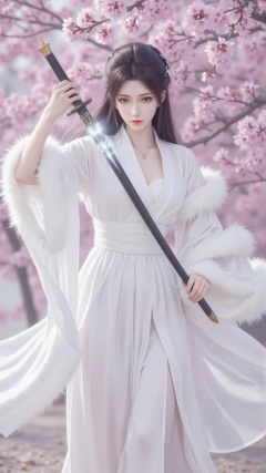 • Color: The colors are mainly white and pink, creating a fresh and soft atmosphere. The character's white clothing contrasts with the pink cherry blossoms in the background, highlighting the character's image.
