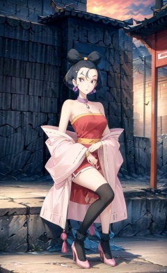 Black socks, black perforated socks, socks, high heels, black high heels, neck collar, a gemstone collar,
