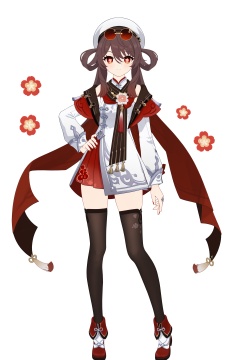score_9,score_8_up,score_7_up,score_anime,8k,best quality,masterpiece,(ultra-detailed),(high detailed skin),(by nanoless, by misumi \(macaroni\),:0.5),<lora:YLI 0.1v:0.25>,<lora:style1:0.25>,A full-body portrait of a young girl,standing gracefully,pastel art style,high-key lighting,shoujo manga influence,hd quality,delicate details,full body,full shot,standing,looking at viewer,(solo:1.2),simple background,white background,hand on own hip,<lora:huxiang-pony-Tanger-000018:0.8>,hu tao \(cherries snow-laden\) \(genshin impact\),clothes:cherries snow-laden,flower-shaped pupils,1girl,white hat,long hair,symbol-shaped pupils,scarf,hair rings,black thighhighs,red eyes,sunglasses,brown hair,long sleeves,zettai ryouiki,hair between eyes,