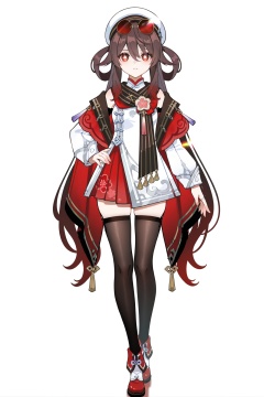 8k,best quality,masterpiece,(ultra-detailed),(high detailed skin),((artist:reoen),(artist:fuzichoco),(artist:atdan),(artist:torino_aqua),year 2024:0.8)1girl,[artist:wlop],[artist:ningen_mame],artist:ciloranko,[[artist:rhasta]],artist:tidsean,colorful,detailed light,light leaks,sunlight,bokeh,blurry foreground,ray tracing,lens flare,cinematic lighting,full body,full shot,standing,looking at viewer,(solo:1.2),simple background,(white background:1.2),hand on own hip,(white background:1.1),<lora:huxiang-noob-Tanger-000014:0.8>,hu tao \(cherries snow-laden\) \(genshin impact\),clothes:cherries snow-laden,flower-shaped pupils,1girl,hat,long hair,symbol-shaped pupils,scarf,hair rings,black thighhighs,red eyes,sunglasses,brown hair,long sleeves,zettai ryouiki,hair between eyes,A full-body portrait of a young girl,standing gracefully,pastel art style,high-key lighting,shoujo manga influence,hd quality,delicate details,