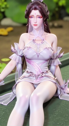 SFW,(masterpiece:1.2),best quality,absurdres,masterpiece,original,extremely detailed wallpaper,perfect lighting,1girl,solo,looking at viewer,(cowboy_shot:1.3),long hair,high heels,blurry background,depth of field,motion blur,(light cyan long dress:1.23),china_dress,chinese_style,bare shouders,crystal_earrings,headpiece,hair_tie,chest_jewel,gem,necklace,jewelry,in summer,day,outdoors,nature,garden,,(sitting,Lotus pond, lotus:1.59),(huge breasts:2.99),(full breasts:2.89),Xzhihua,Xsiyouyou,Xyanruyu,Xmoxiaonan,Xyeqingxian,Xyuechan,Xwenjing
