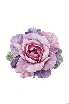An eye-level painting of a cabbage on a white backdrop. The cabbage is a vibrant shade of purple