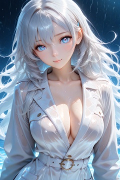 Masterpiece,best quality,ultra-detailed,detailed pupils,high quality,top CG rendering,highest quality,ultra-clear,ultra-detailed,Official Art,Extremely Detailed CG,8k Wallpapers,good figure,HD,game CG, 1girl, wet body,coat