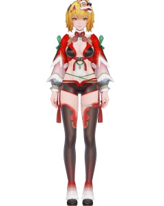 8k,best quality,masterpiece,(ultra-detailed),(high detailed skin),(by nanoless, by misumi \(macaroni\),:0.5),A full-body portrait of a young girl,standing gracefully,pastel art style,high-key lighting,shoujo manga influence,hd quality,delicate details,full body,full shot,standing,looking at viewer,(solo:1.2),simple background,white background,<lora:cbcnwed-sd-Tanger-000019:0.8>,Fenny, clothes: Fenny Lion dance costumes, 3rd clothes, Fenny mask hair ornament, blonde hair, black shorts, black thighhighs, 1girl,breasts, short hair, bell,