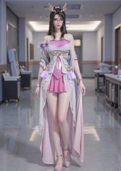 Realistic photos, 1girl, glasses, long hair, fair skin, big breasts, nurses cap, nurses, long legs, high heels, full body, fashion posture, hospital corridor,