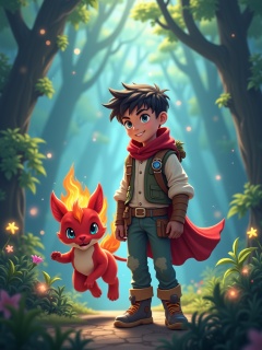 In the mysterious world, young Azeri, dressed in a light adventure suit, stands firmly in a fantasy forest, with the camera facing his energetic face. Beside him, a magical creature named Xiaoyan is jumping brightly. Xiaoyan is red all over, with a flame-**** mane, and his majestic appearance is not inferior to the majestic little beast. The strange plants around them swayed gently in the breeze, some emitting soft blue light, others flashing colorful light. Not far away, a river gurgling with mysterious runes, ripples seem to tell an ancient story. Azeri held the magic badge in his hand tightly. It was the key prop to unlock the secrets of the other world. He and Xiaoyan's eyes met, and their eyes revealed their desire to explore the unknown. The next second, they were about to embark on a challenging adventure to uncover the hidden mystery of this different world.