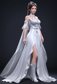 (full body:1.1),78.<lora:YQponyguxiaosangV2:0.8>,(q1528437228:1.3),1girl,solo,dress,long_hair,white_dress,hair_ornament,jewelry,earrings,black_hair,clothing_cutout,brown_hair,blue_eyes,tiara,ponytail,shoulder_cutout,bare_shoulders,hair_bun,boots,see-through,cape,facial_mark,,(huge breasts:0.8),(looking_at_viewer:1.1),(mature female:1.3),BREAK intricate details,shiny_skin,solo focus,perfect_anatomy,(score_9:1.3),(simple background:-1),(blurry:-1.2),(masterpiece:1.3),(best quality:1.3),(simple background,pure black background,black background:1.1),