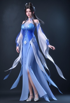 (full body:1.1),67.<lora:YQponylimuwan1V4:0.8>,(q1528437228:1.1),solo,1girl,black_hair,long_hair,hair_ornament,dress,jewelry,earrings,blue_dress,hair_bun,chinese_clothes,long_sleeves,single_hair_bun,realistic,black_eyes,bare_shoulders,ponytail,hanfu,see-through,hair_stick,detached_sleeves,,(huge breasts:0.8),(looking_at_viewer:1.1),(mature female:1.3),BREAK intricate details,shiny_skin,solo focus,perfect_anatomy,(score_9:1.3),(simple background:-1),(blurry:-1.2),(masterpiece:1.3),(best quality:1.3),(simple background,pure black background,black background:1.1),
