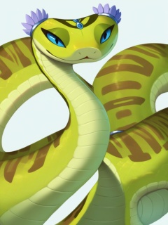Masterpiece,Best Quality,master viper,snake,full body,feral,solo,headdress,perfection detail,extreme detail,solo,green body,<lora:master viperXL:1>,simple background,face_focus,